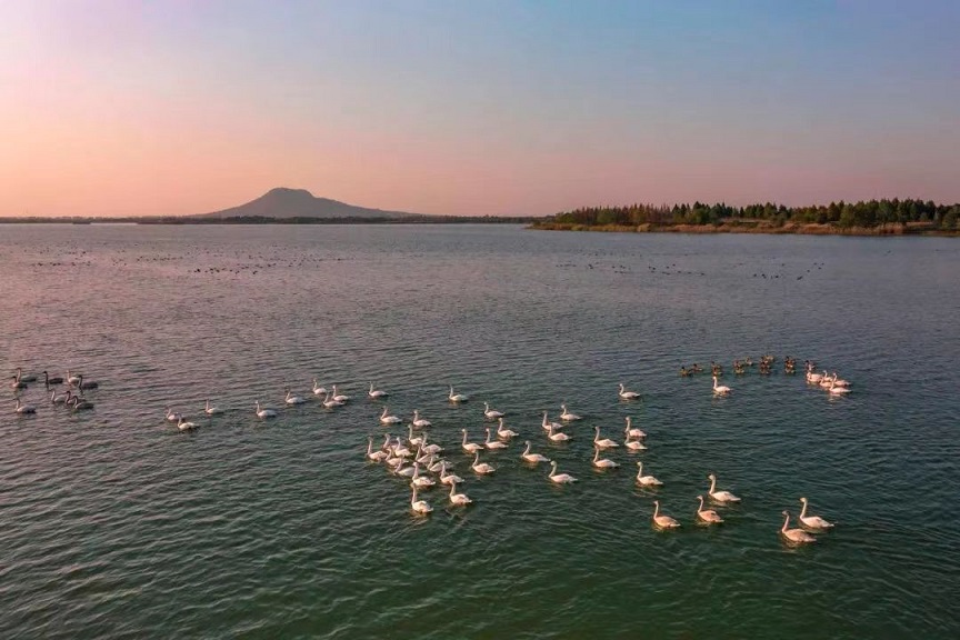 赤山湖国家湿地公园位于我校江宁校区东南方向约23公里,总面积为1300公顷。是中国首个赤山绿水国家湿地公园、也是东亚-澳大利西亚候鸟迁徒路线上的重要驿站和栖息地。每年吸引大量天鹅、白琵鹭、鸬鹚等珍稀鸟类前来栖息越冬。著名景点有赤山湖绿道、断桥夕照、破冈渎闸、鼍龙背则等。形成了“湖面广阔、河流环绕、滩涂交织、岛屿点缀”的生态格局。