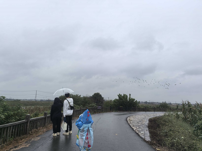 烟雨中的赤山湖,水雾氤氲,芦苇摇曳,远山如黛,构成了一幅灵动的水墨画卷。大天鹅、白鹭、野鸭等鸟类在湖面上尽情嬉戏,为赤山湖带来了无尽的生机与活力。雨水洗涤过的空气格外清新,大家行进在亲水栈道,聆听雨滴敲打湖面的自然韵律,观赏水鸟在雨中嬉戏的生动场景,平日里的喧嚣在此刻消失殆尽,身心与自然深度交融。正午时许,队友们在观景亭下野餐,大家相互分享美食,心中无比惬意。这场秋雨中的徒步,不仅是一次对毅力与耐力的考验,更是一次身心与自然深度交融的探索之旅,让大家更加深入地感受到了雨中徒步的独特魅力。尤其是小队员们的表现可圈可点,其中最小的队员只有四五岁,也坚持走完了全程。户外活动像一把神奇的钥匙,能同时开启阳光心态、健康体魄和聪慧头脑的大门。
